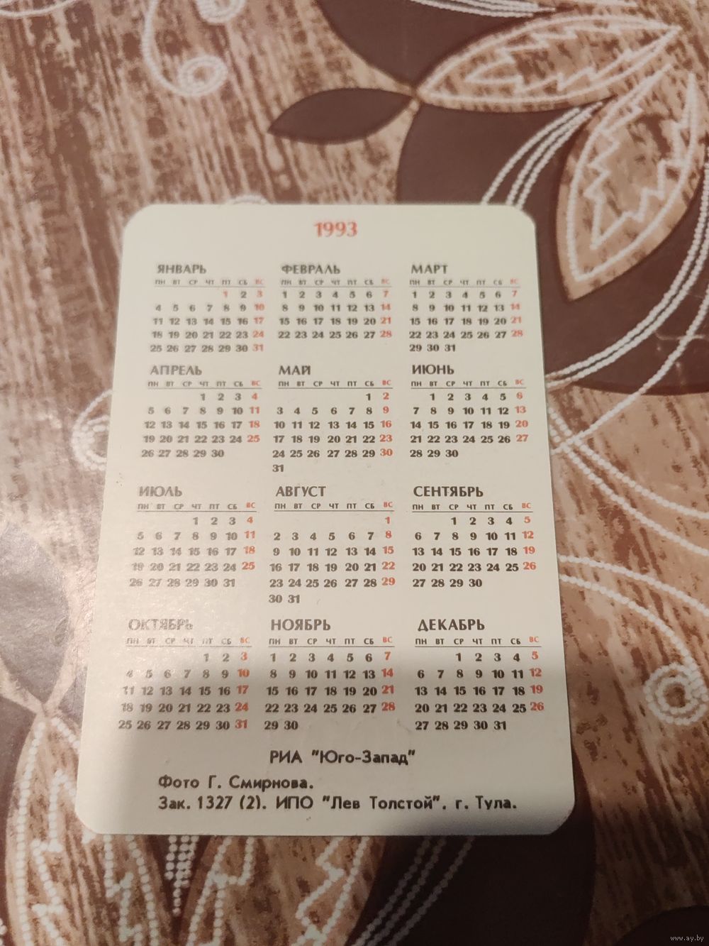 Календарик,кот,1993