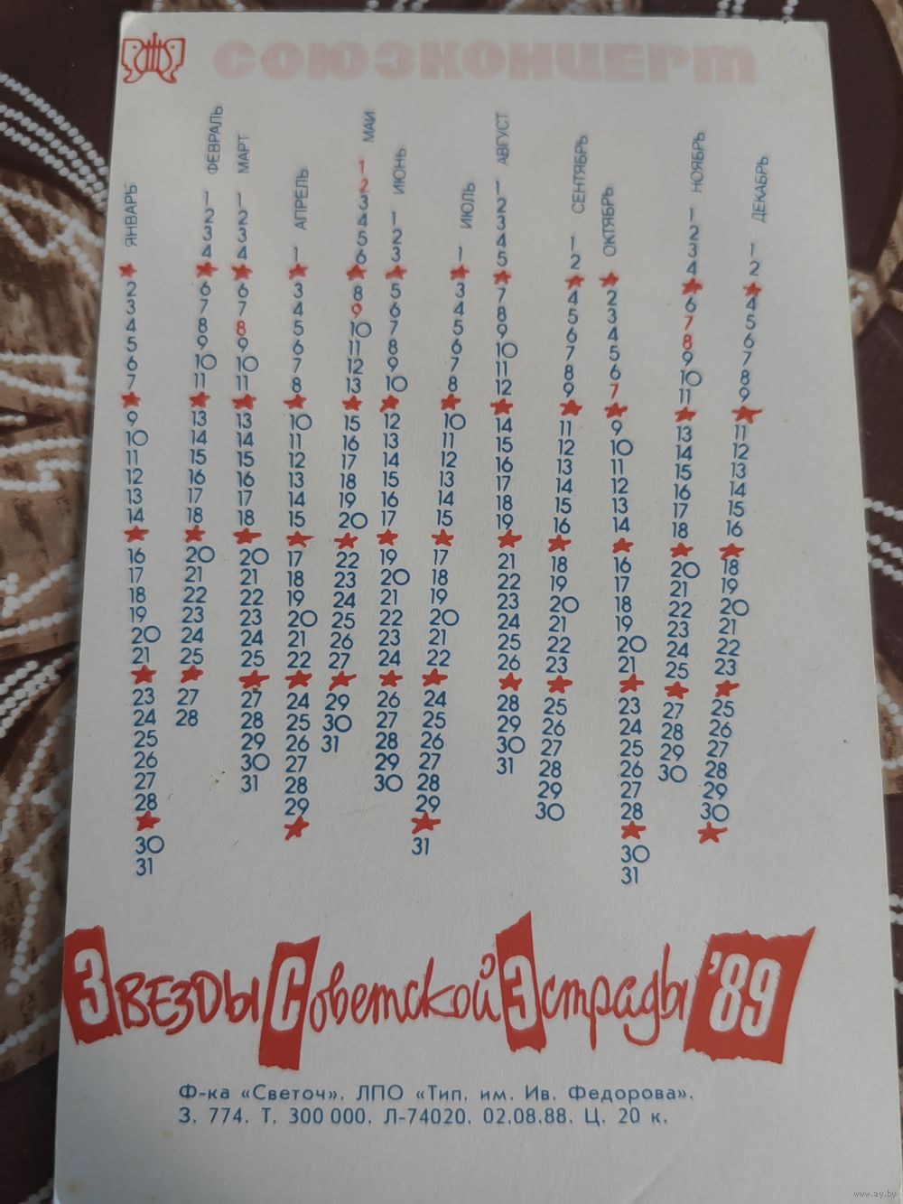Календарик,Леонтьев,1989