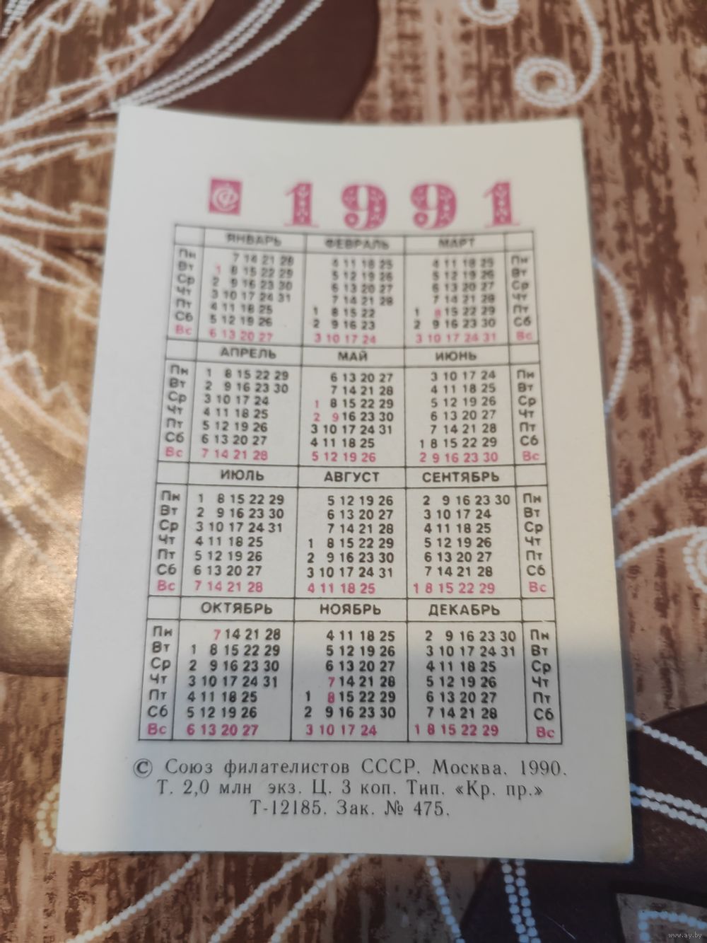 Календарик,марка,1991
