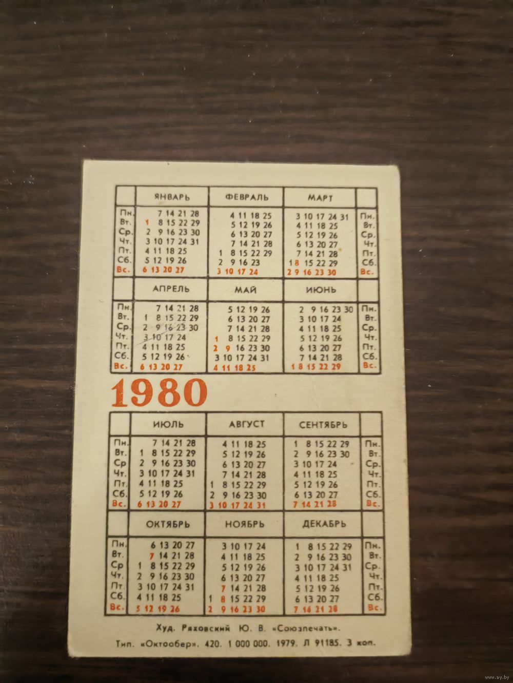 Календарик,марки,1980