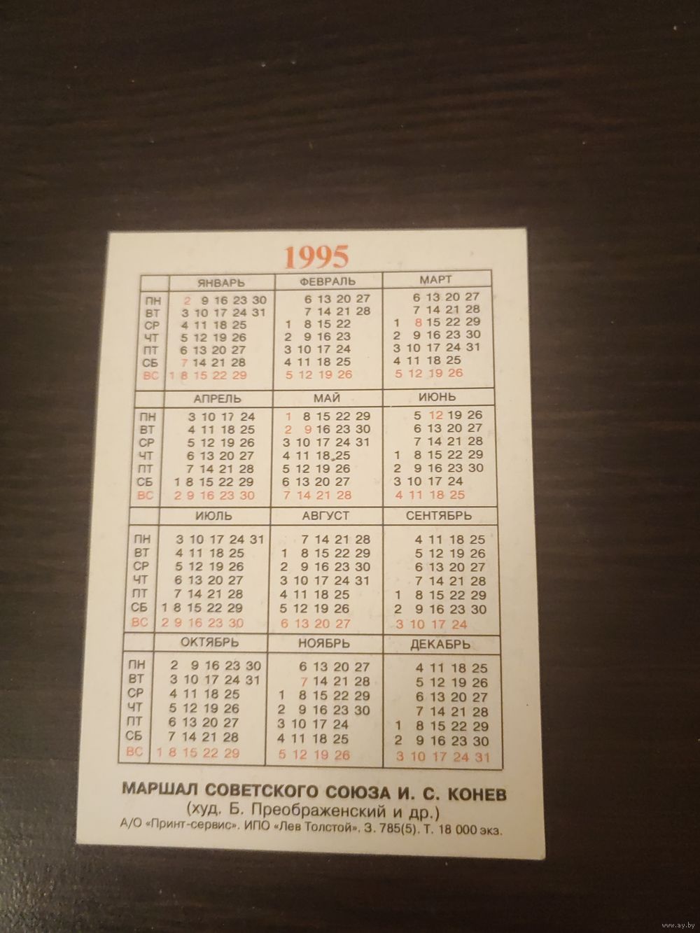 Календарик,маршал конев,1995
