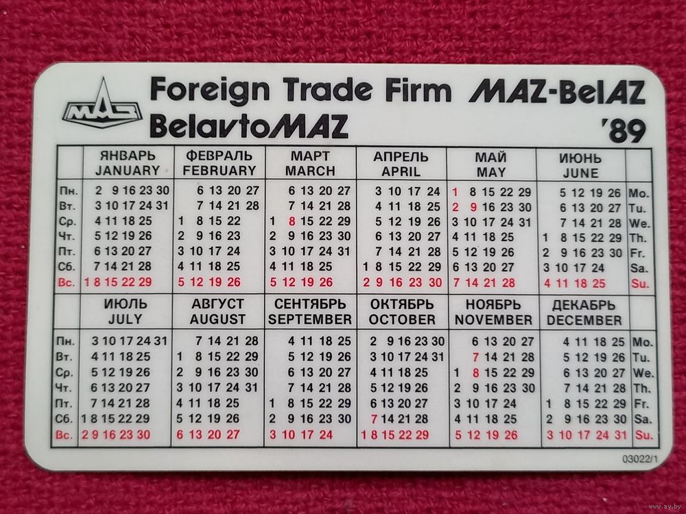 Календарик МАЗ MAZ-5551. Минск 1989 г.