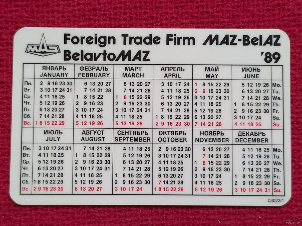 Календарик МАЗ MAZ-5551. Минск 1989 г.