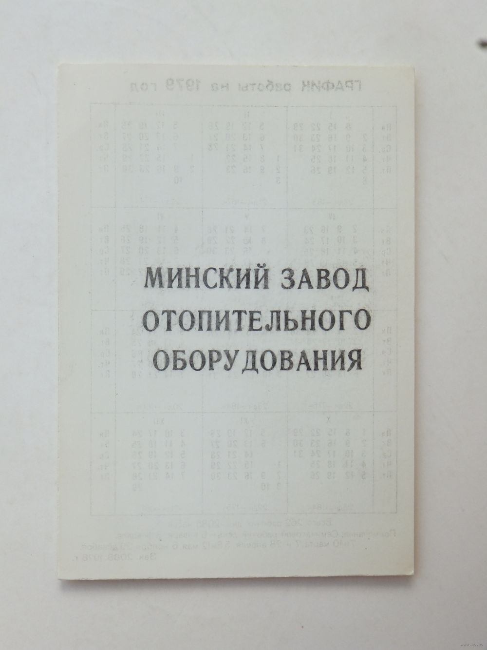 Календарик Минский радиаторный завод 1979