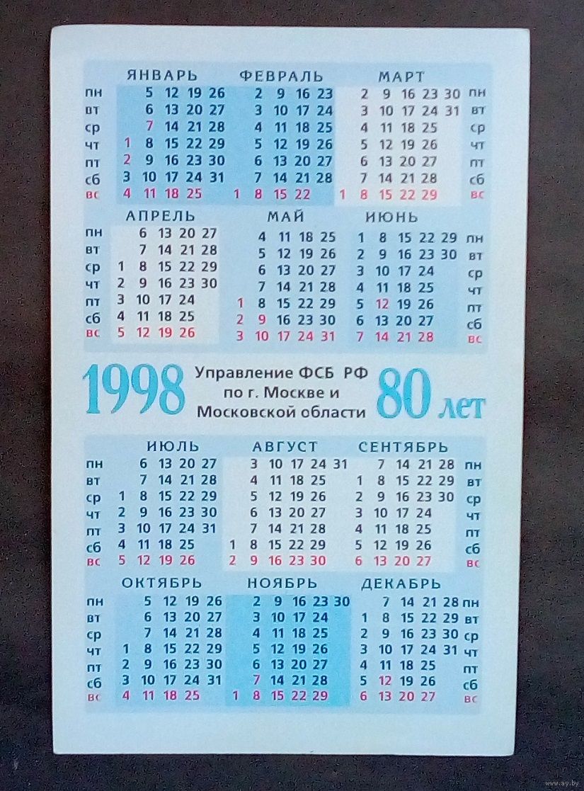 Календарик-Московское управление ФСБ-80 лет. 1998г.