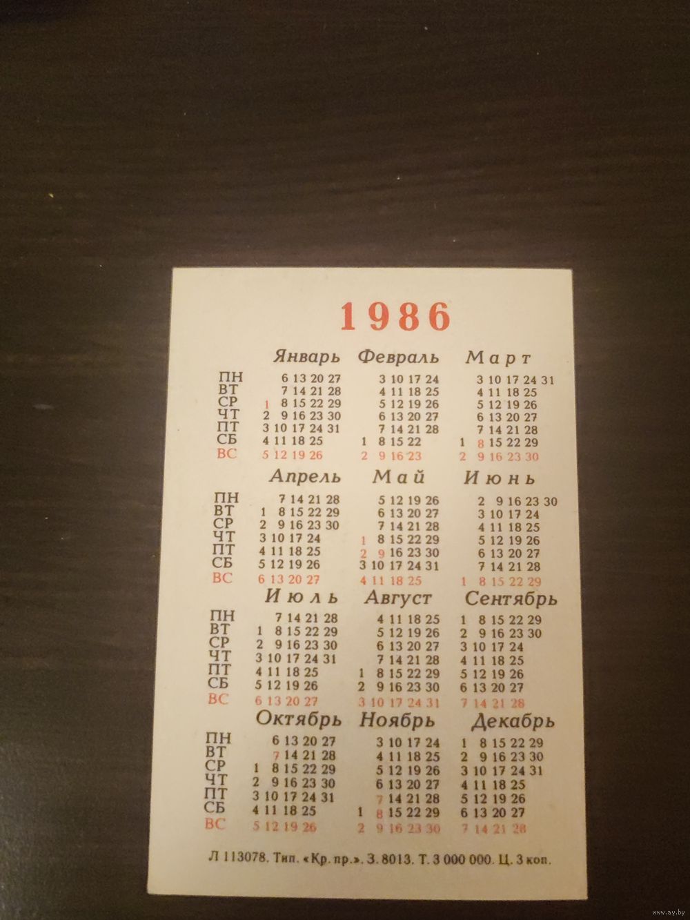 Календарик,мультики,1986
