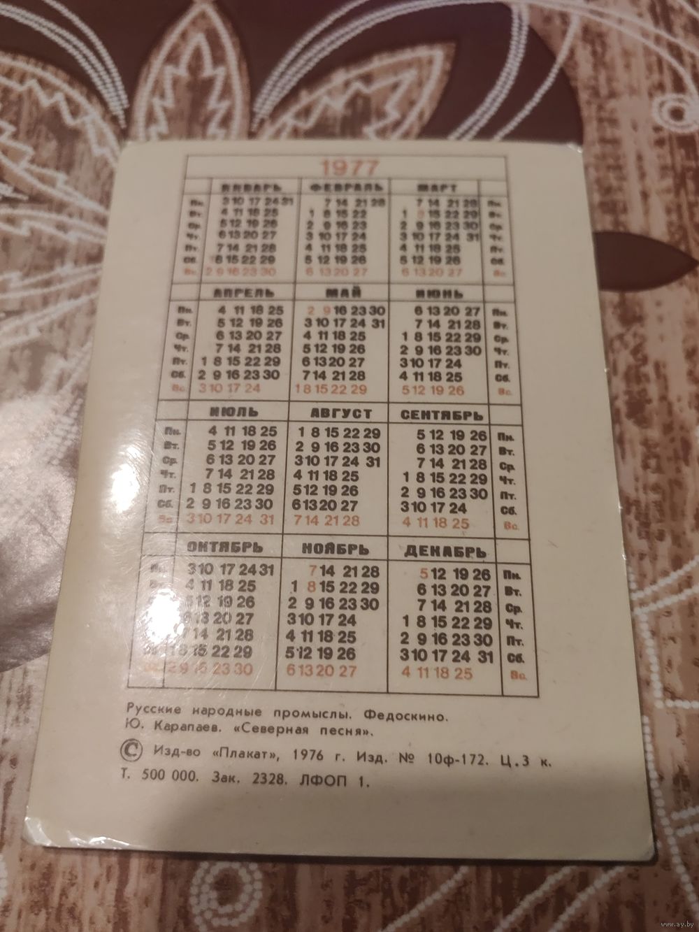 Календарик,пейзаж,1977