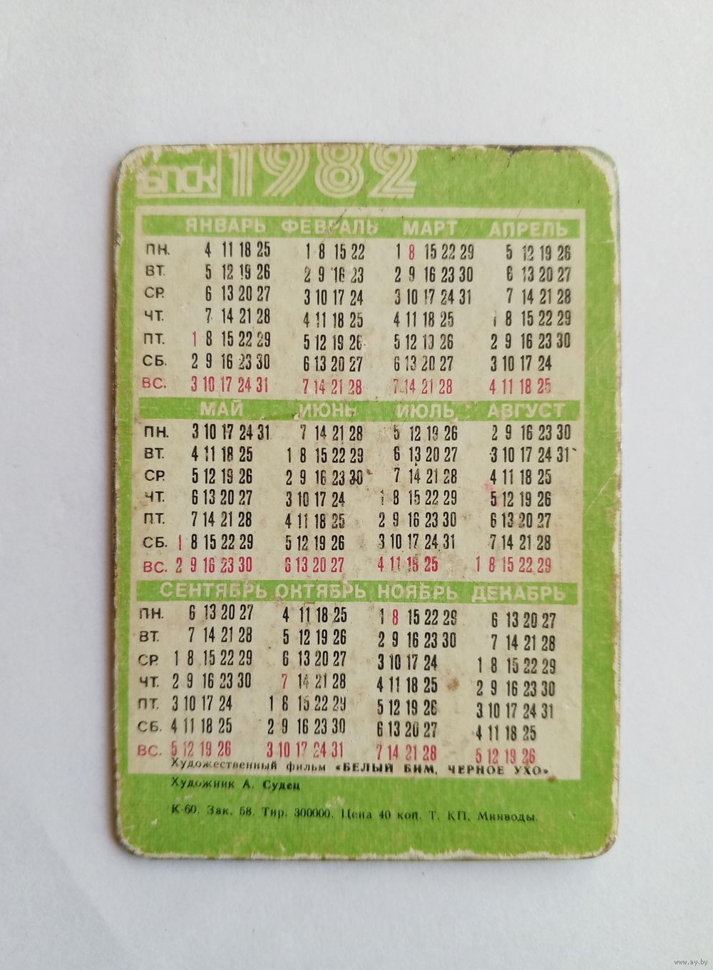 Календарик переливашка 1982 год. Белый Бим, чёрное ухо