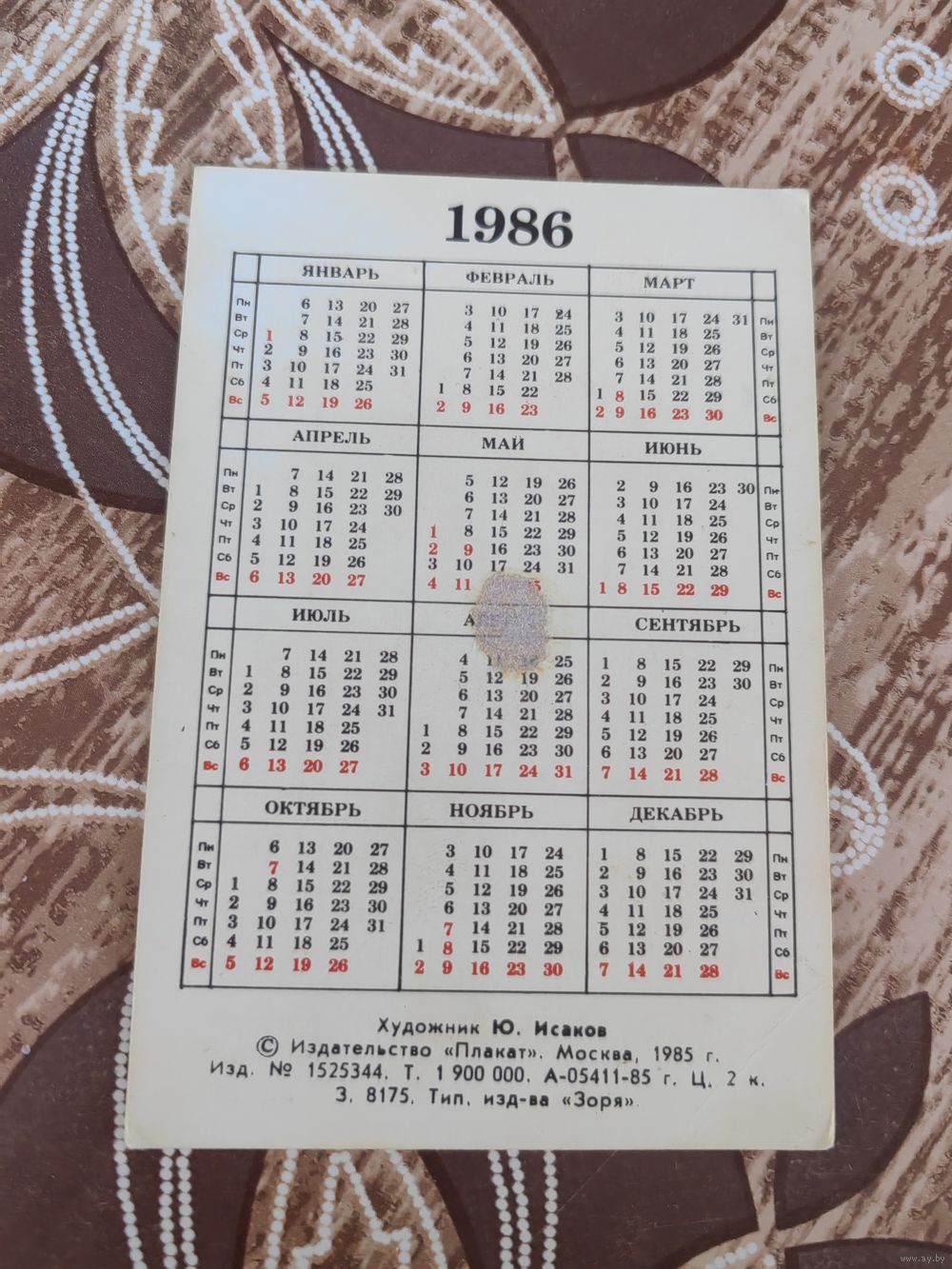 Календарик,плакат,1986