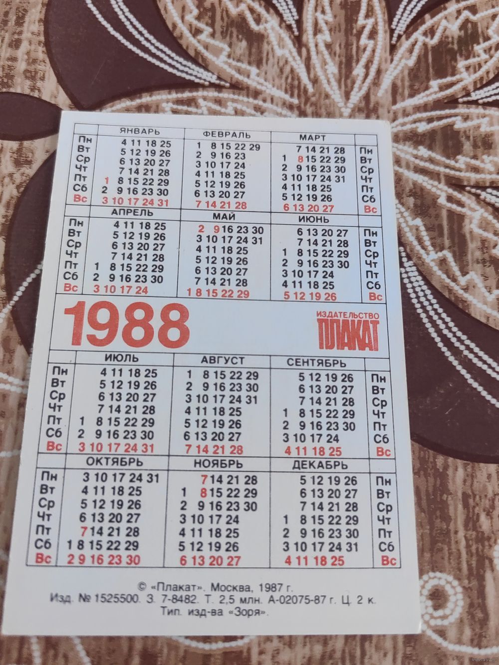 Календарик,плакат,1988