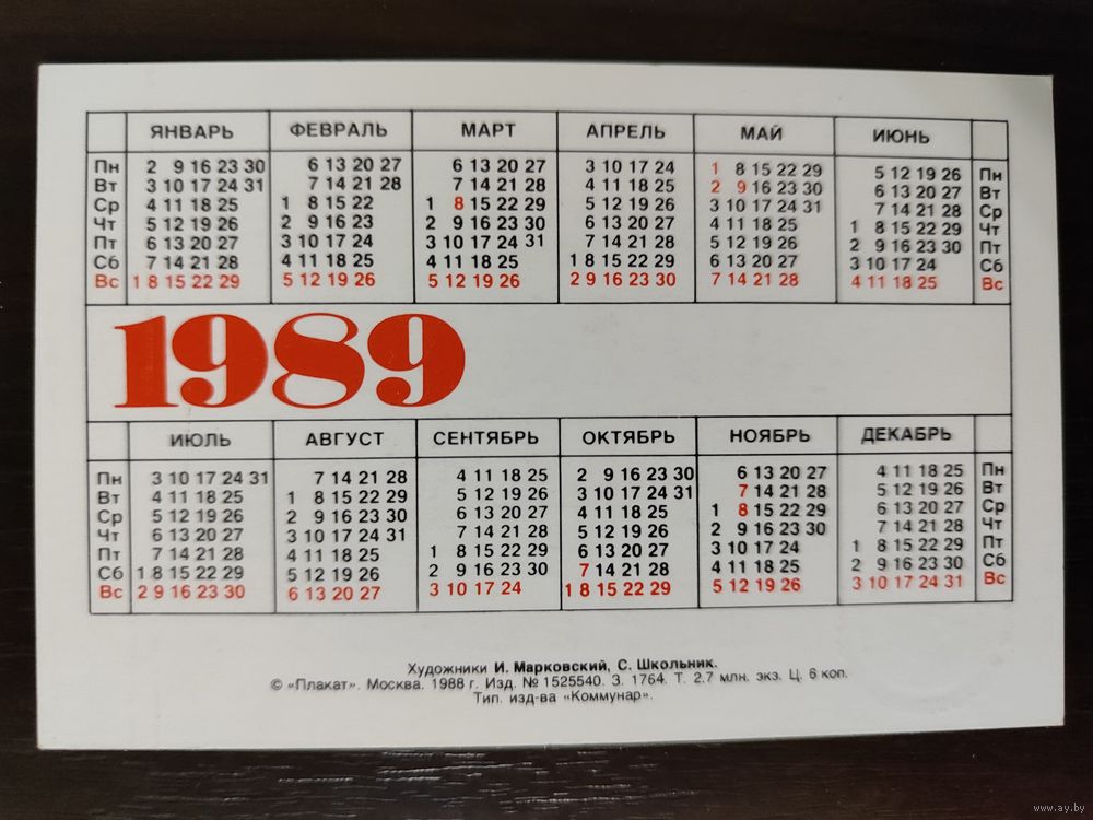 Календарик Плакат 1989г