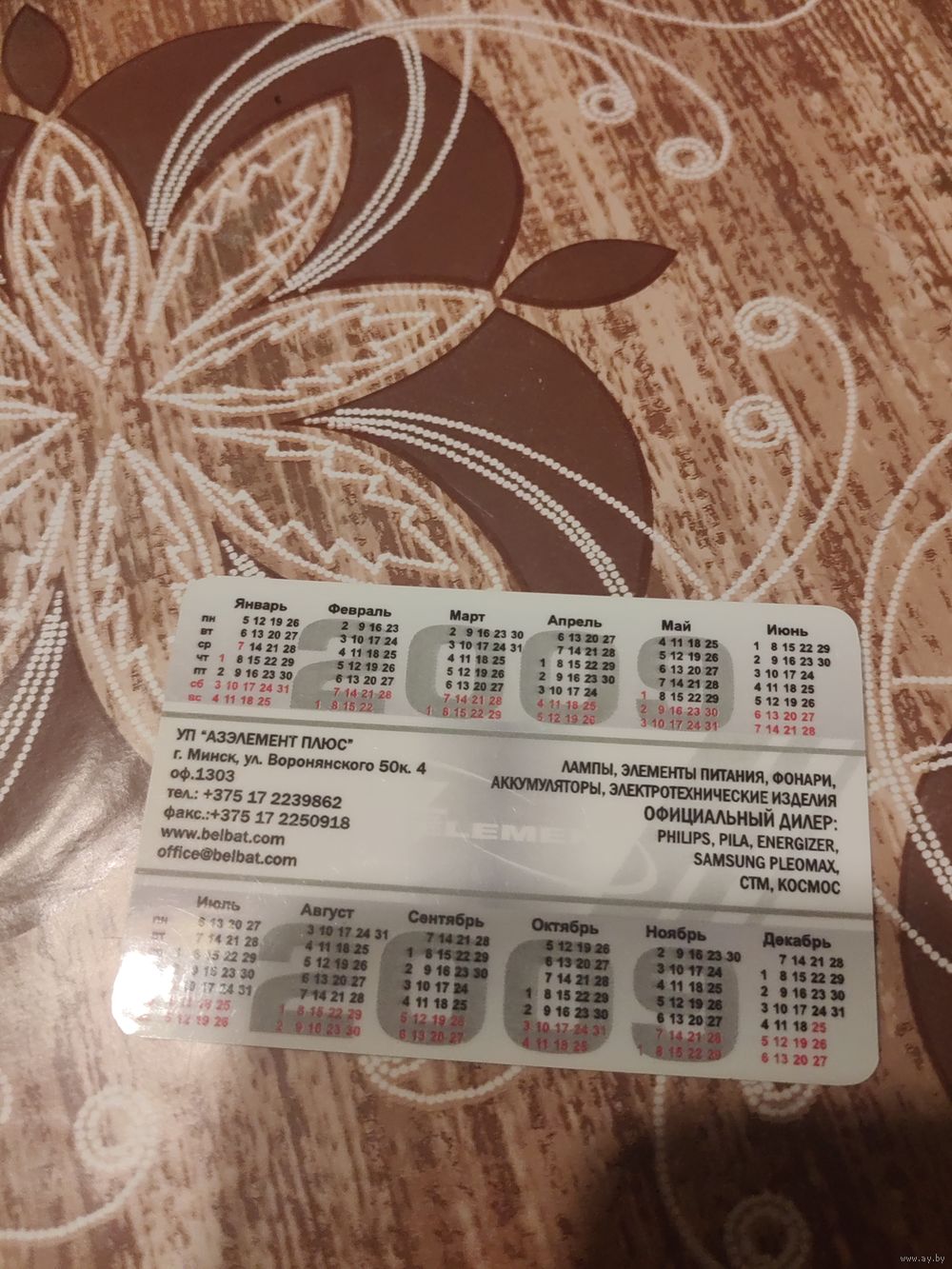 Календарик,пластик,реклама,2009