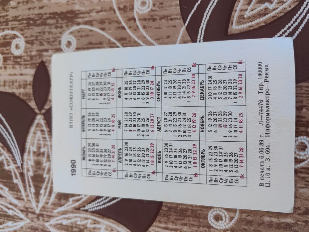 Календарик,полмщук,1990