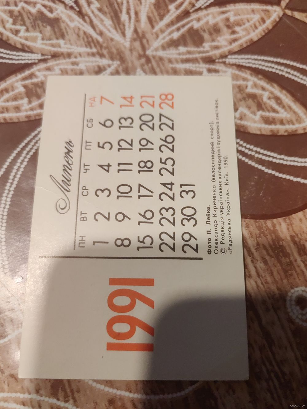 Календарик,пресса,1991