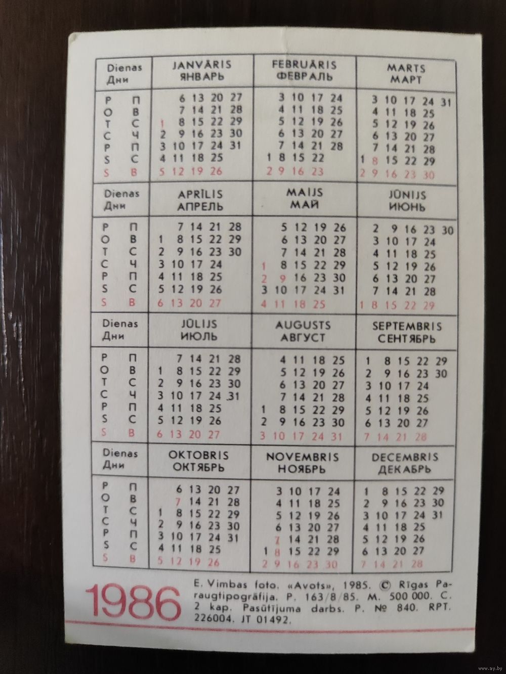 Календарик Прибалтика Дубовик