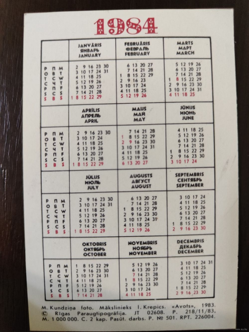 Календарик Прибалтика Груша