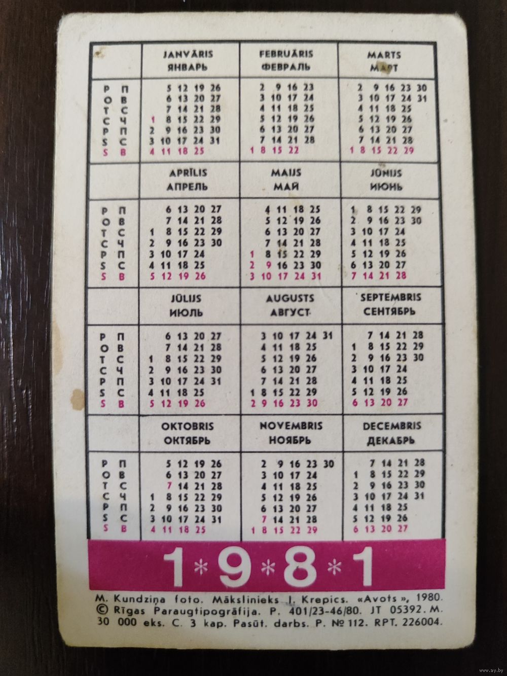 Календарик Прибалтика Касатик