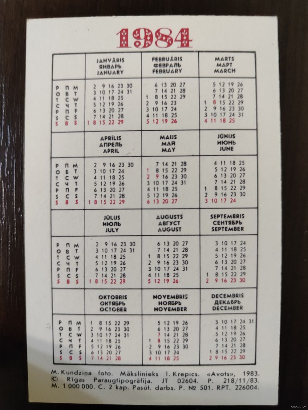 Календарик Прибалтика Подмаренник