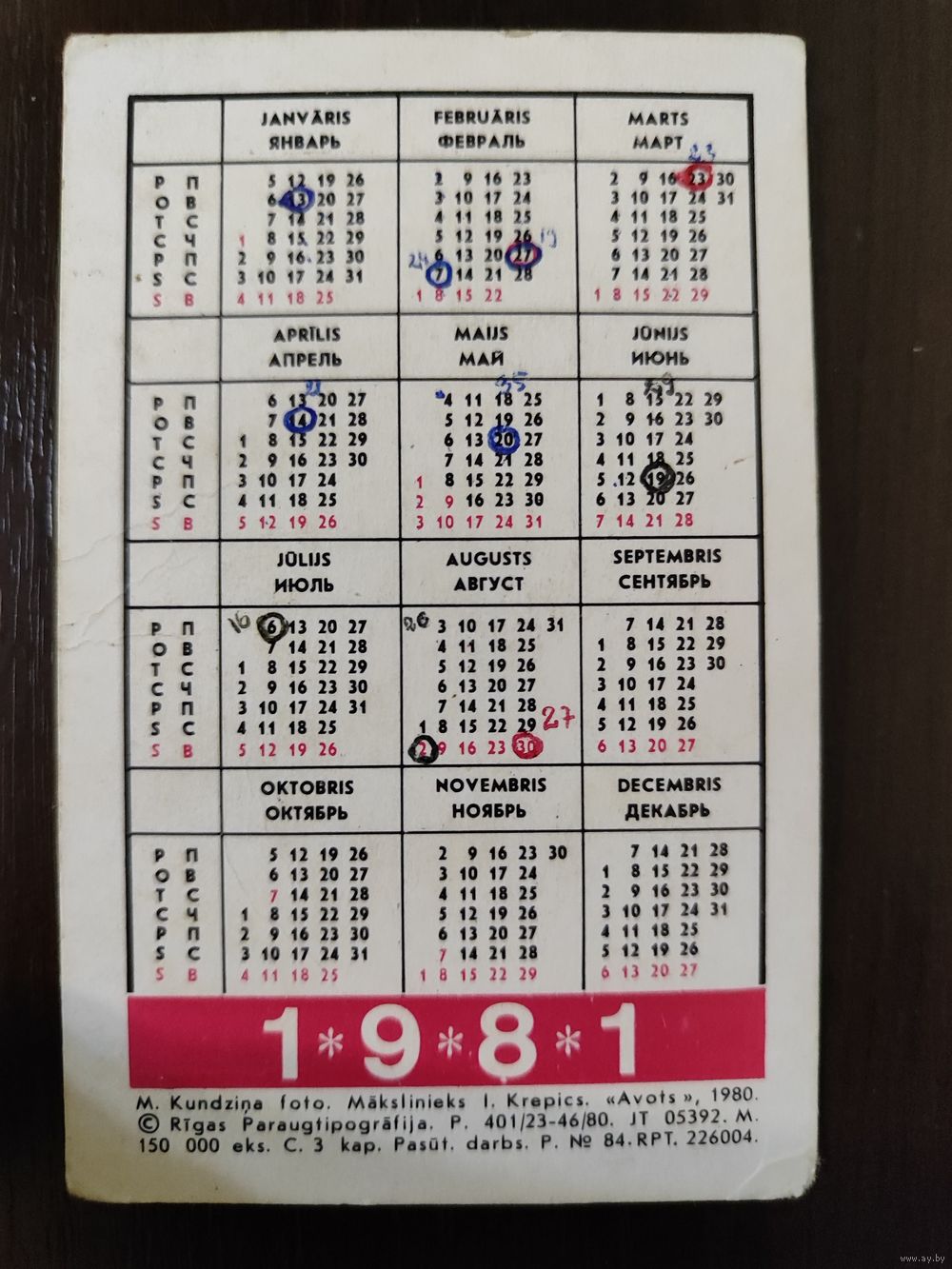 Календарик Прибалтика Тисс