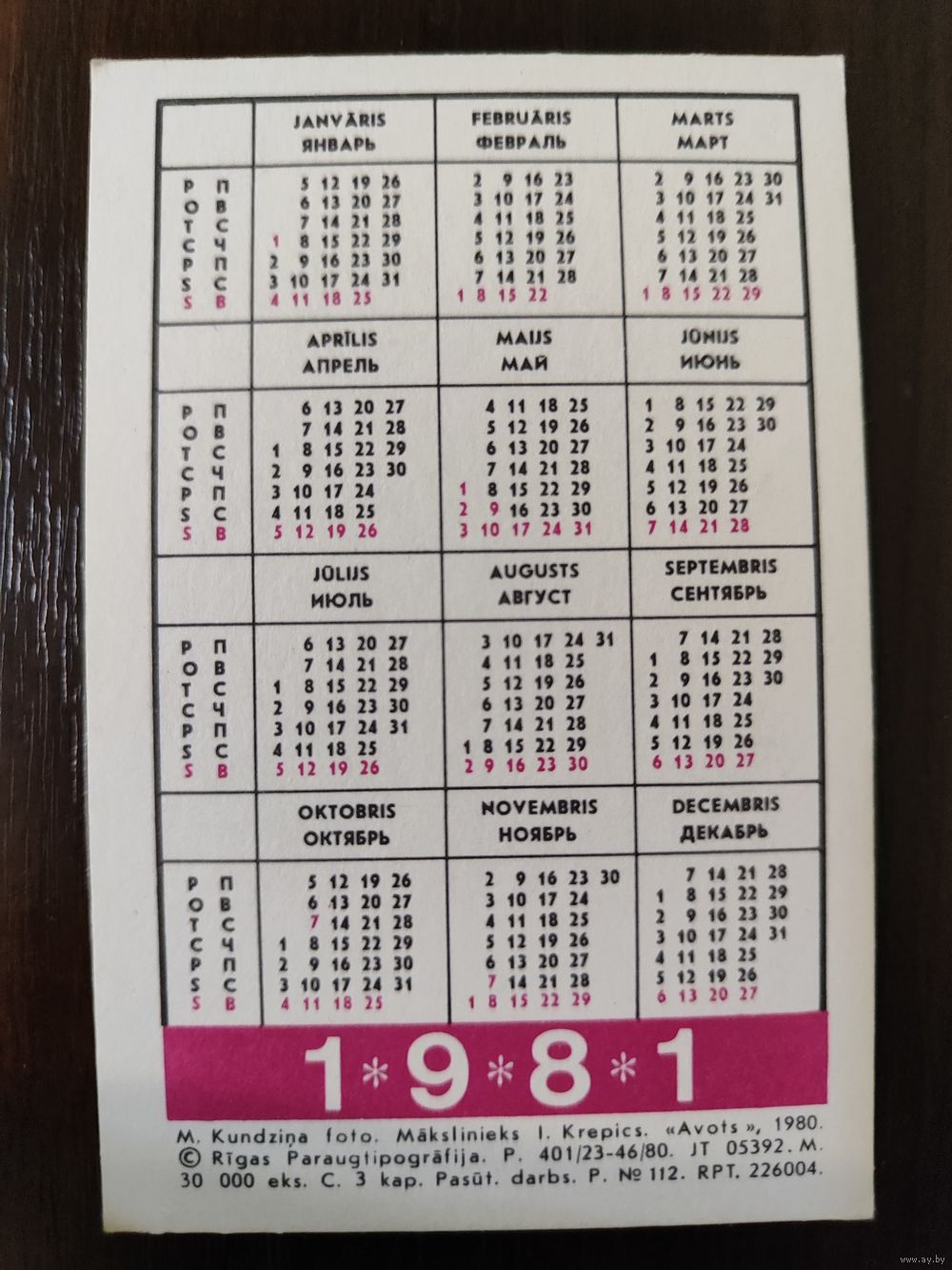 Календарик Прибалтика Зееголовник