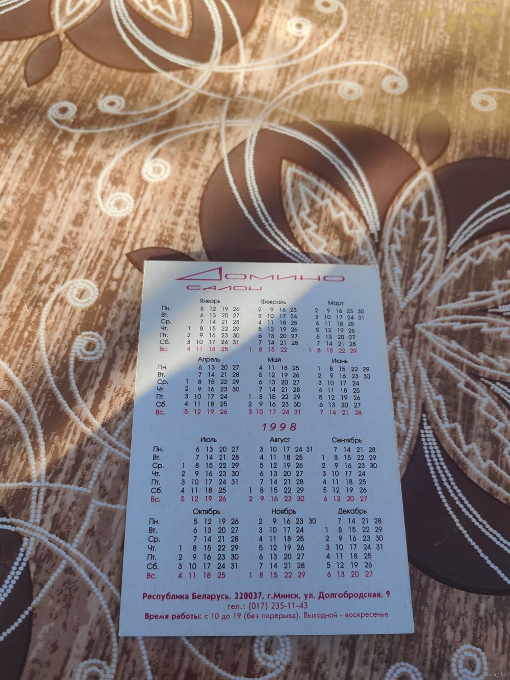 Календарик,реклама,1998