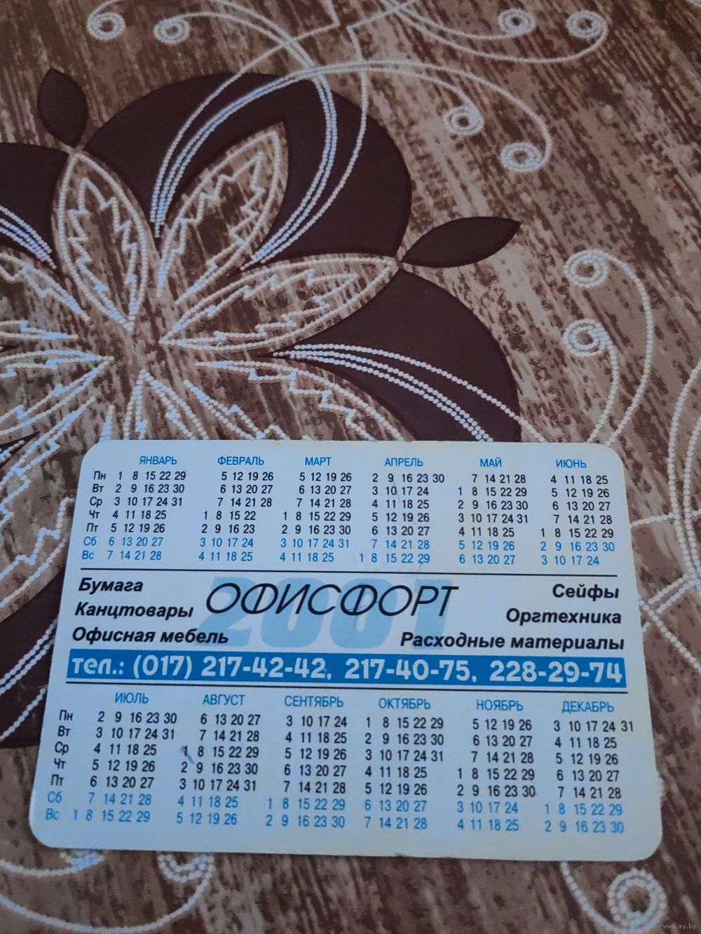 Календарик,реклама,2001