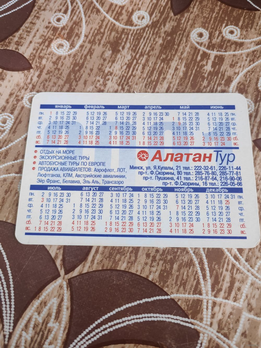 Календарик,реклама,2001
