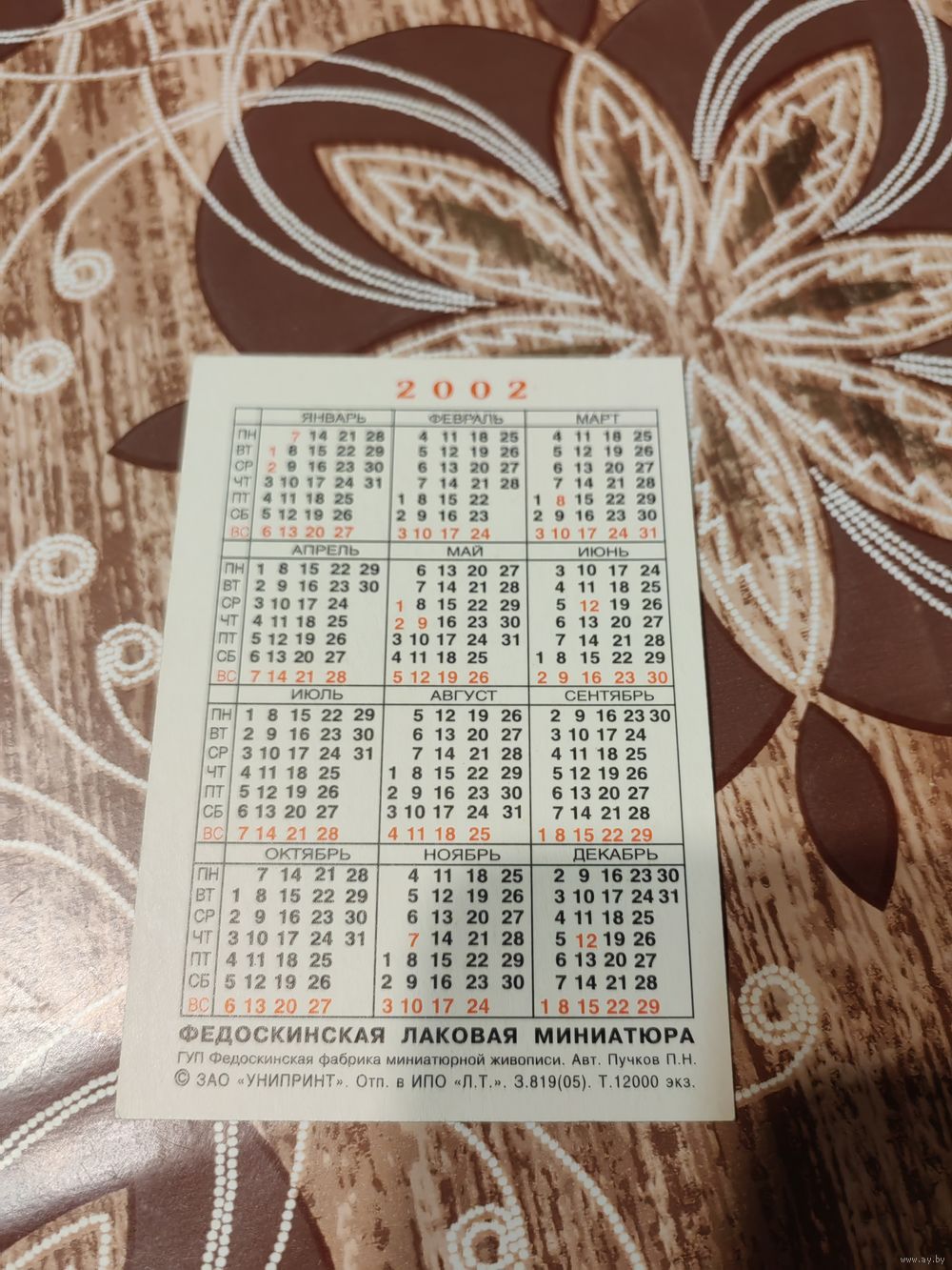Календарик,реклама,2002