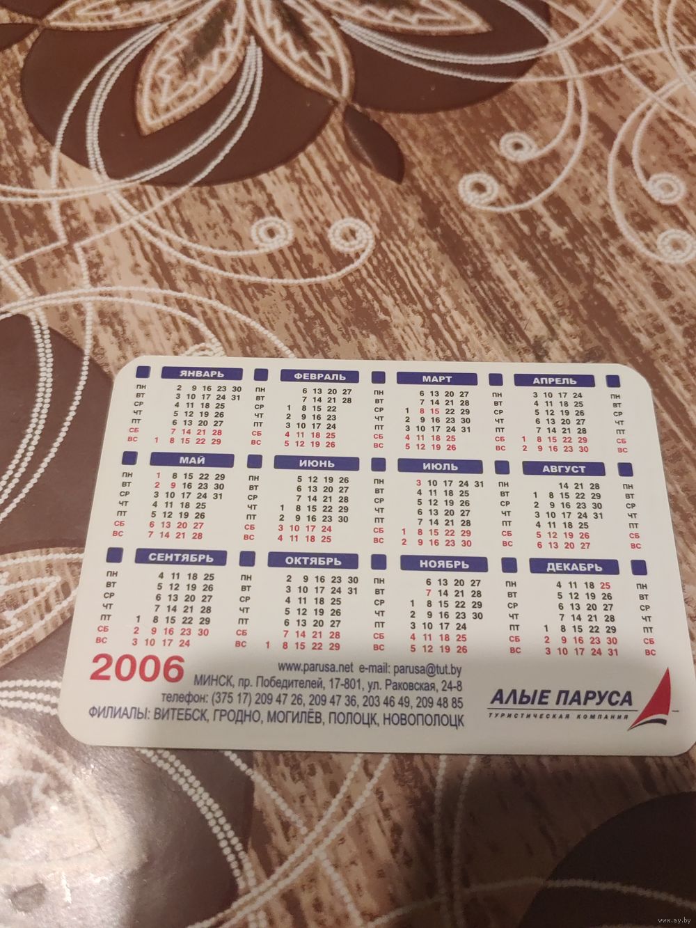 Календарик,реклама,2006