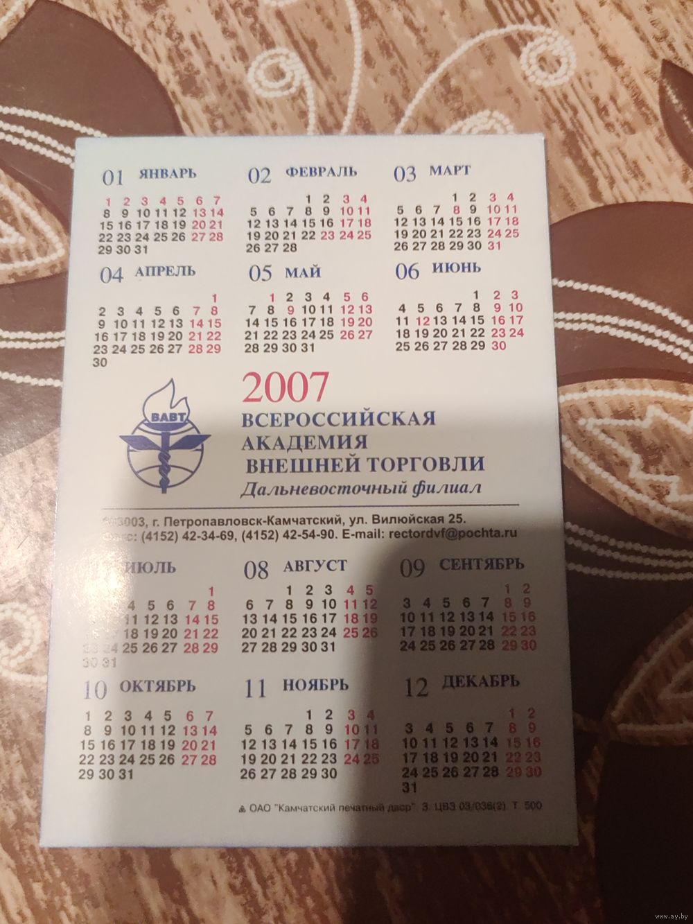 Календарик,реклама,2007