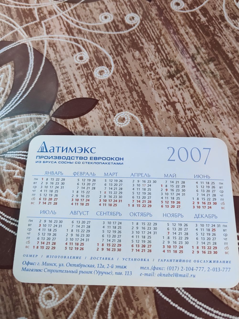 Календарик,реклама,2007