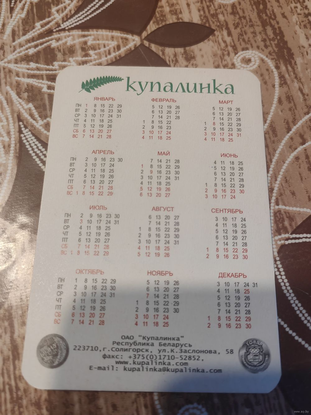 Календарик,реклама,2007