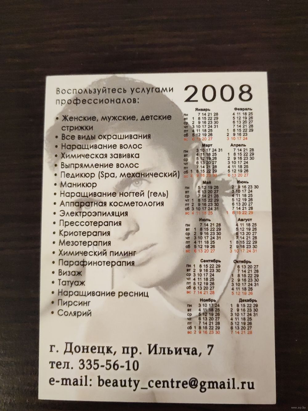 Календарик,реклама,2008