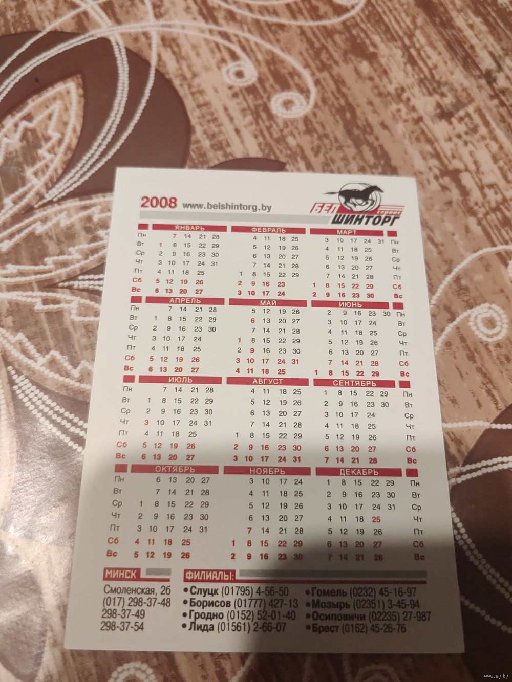 Календарик,реклама,2008