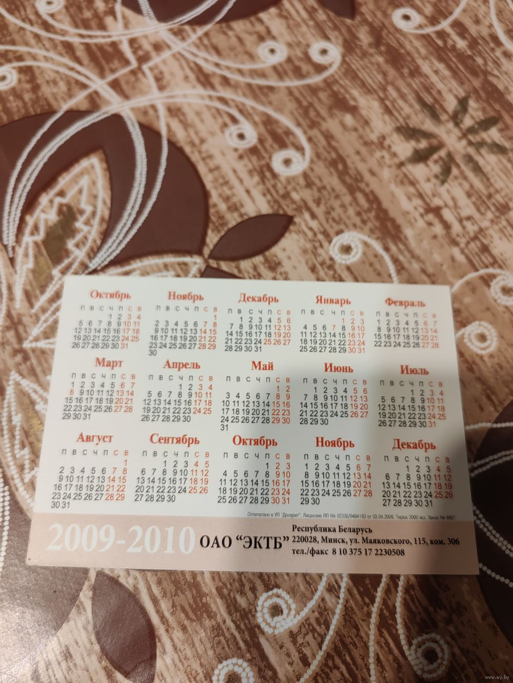 Календарик,реклама,2010