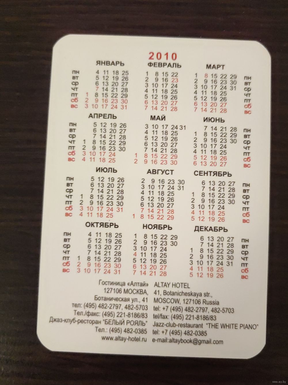 Календарик,реклама,2010