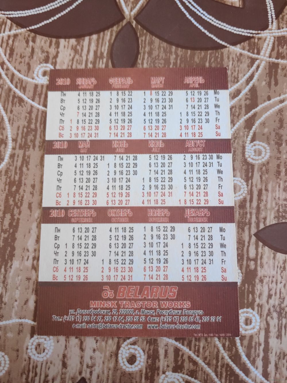 Календарик,реклама,2010