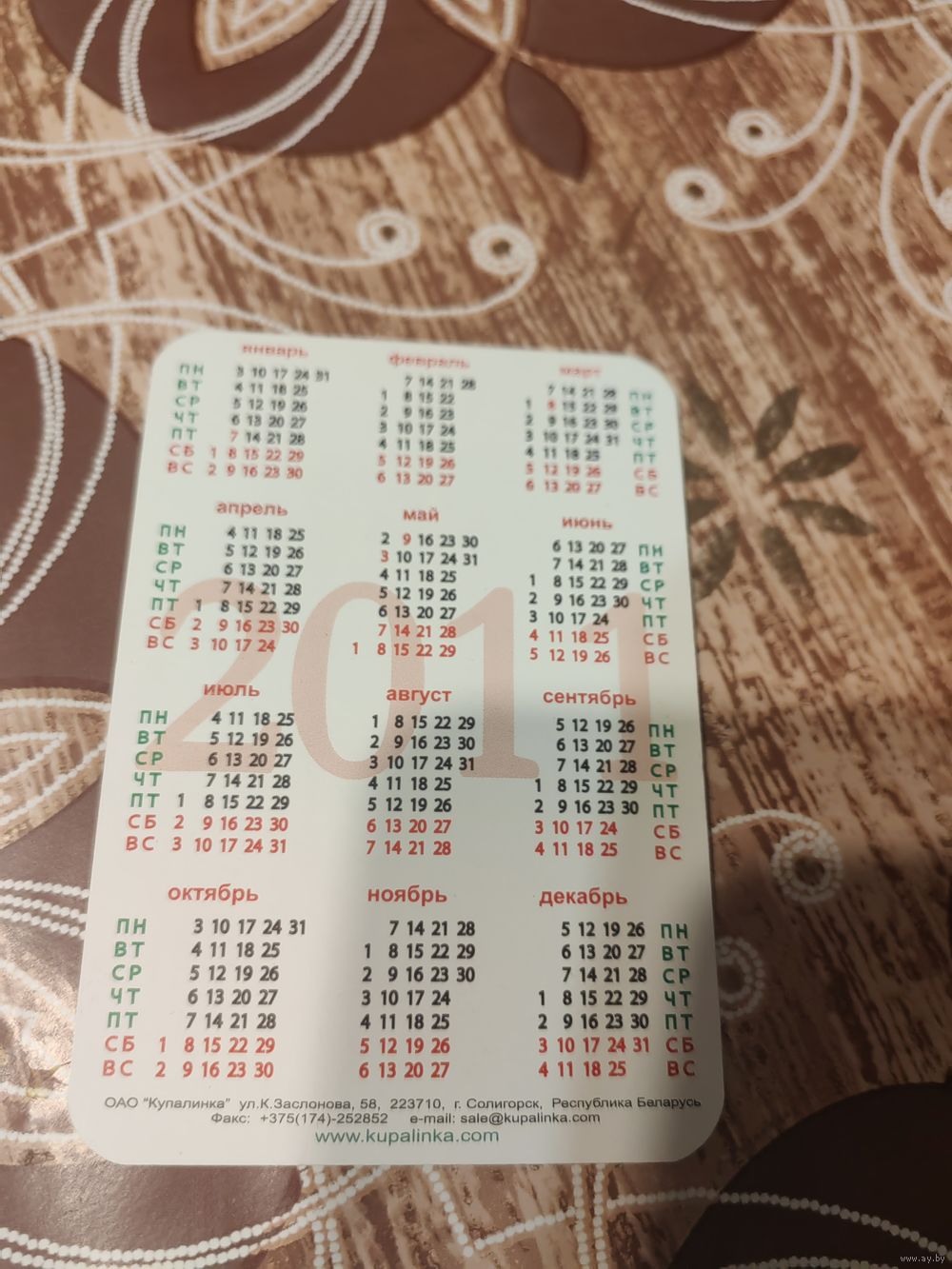 Календарик,реклама,2011