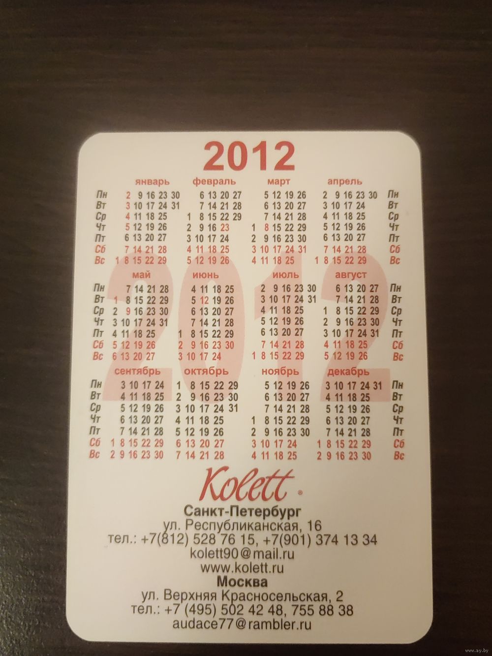 Календарик,реклама,2012