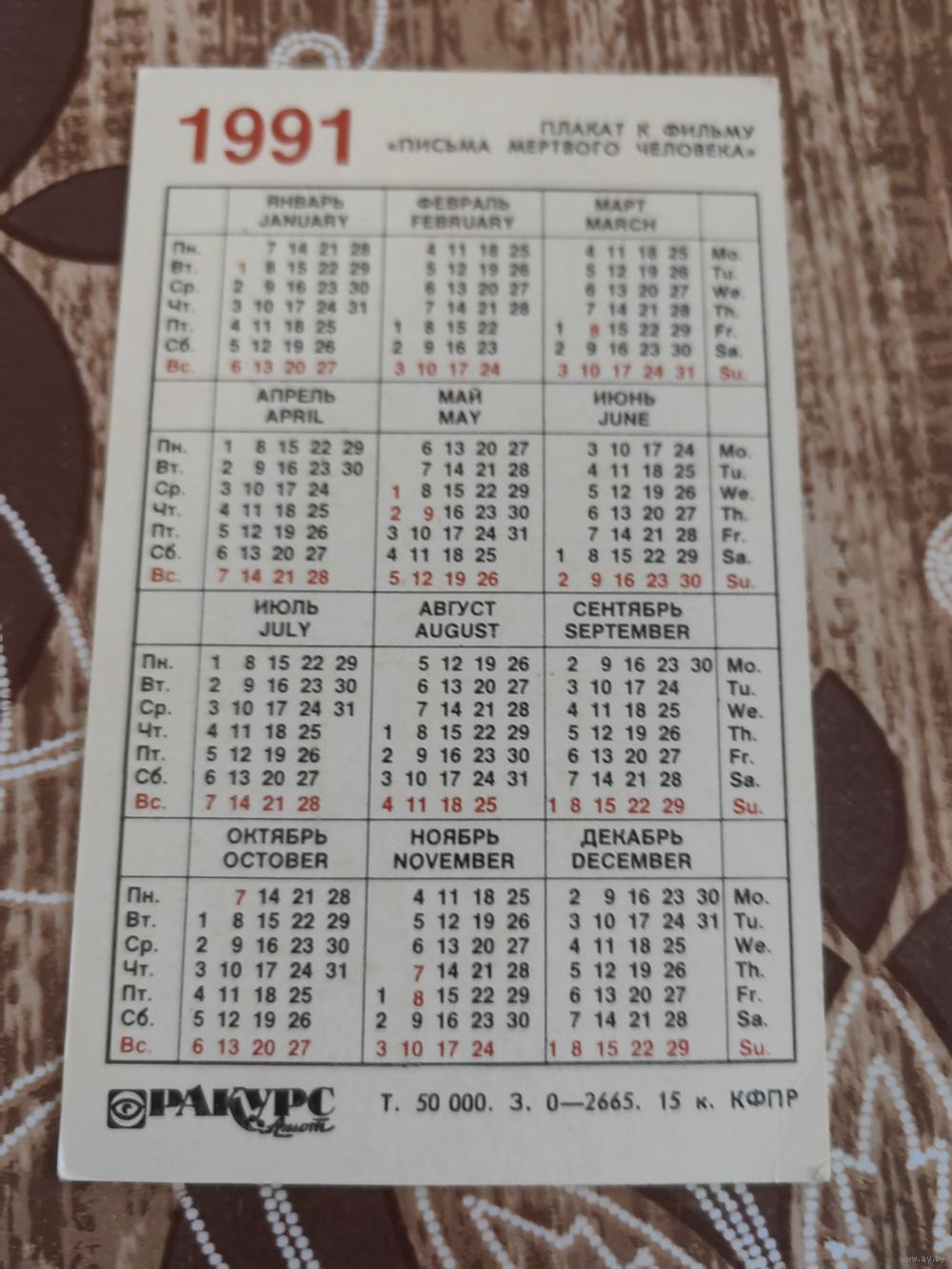 Календарик,реклама,афиша,1991