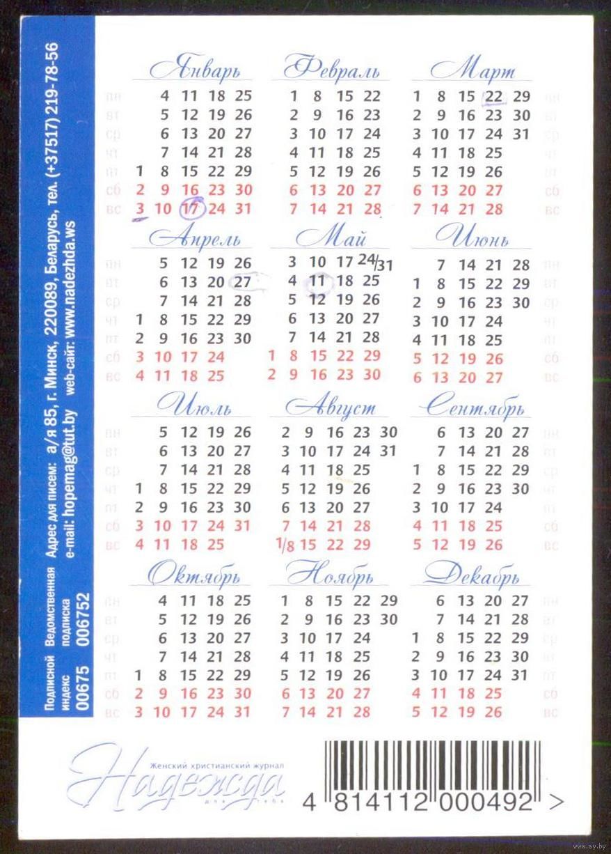 Календарик реклама Беларусь Витебск