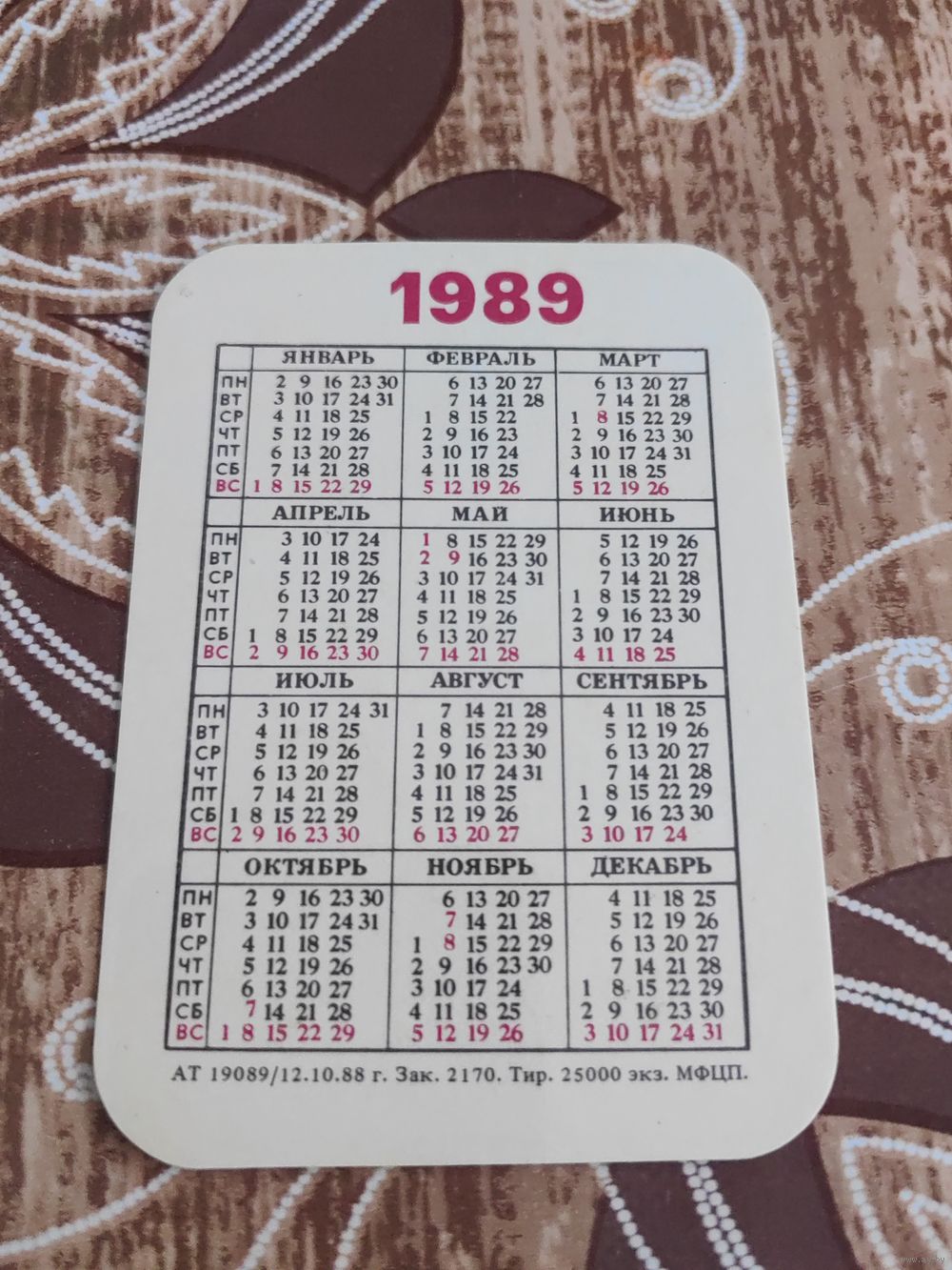 Календарик,реклама,бссср,1989