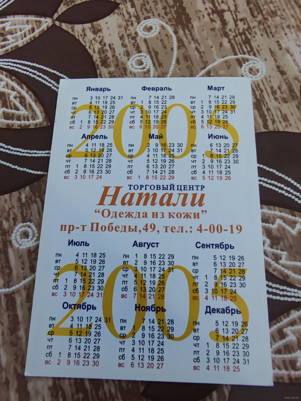 Календарик,реклама,Гомель,2005