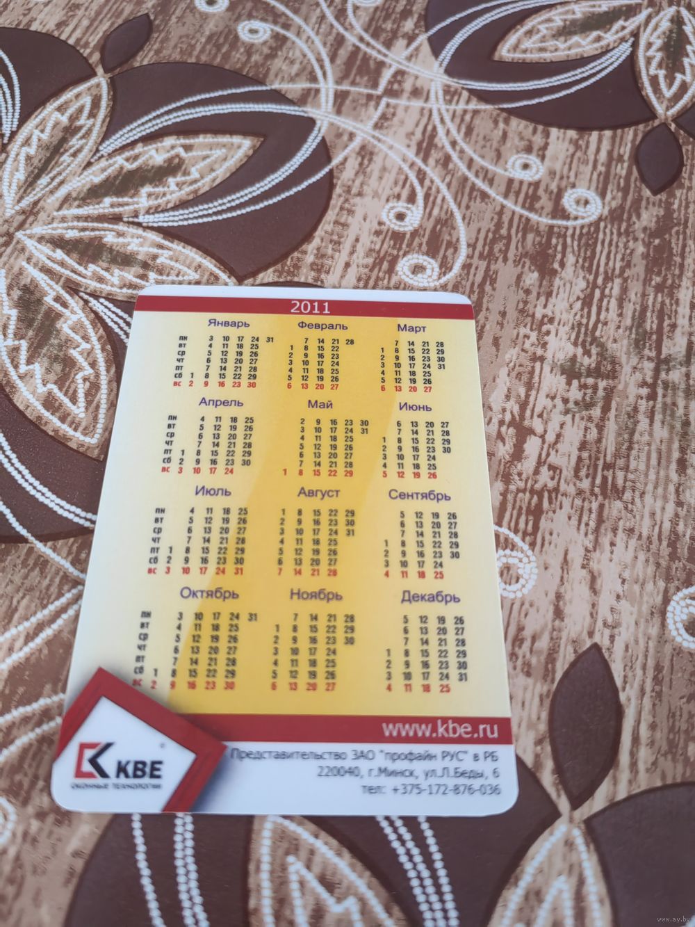 Календарик,реклама,пластик,2011