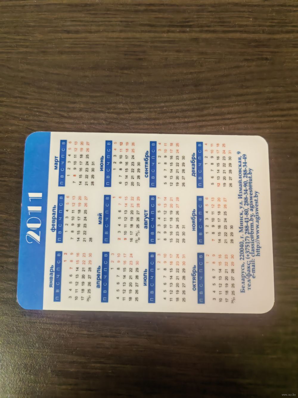 Календарик,реклама,пластик,2011
