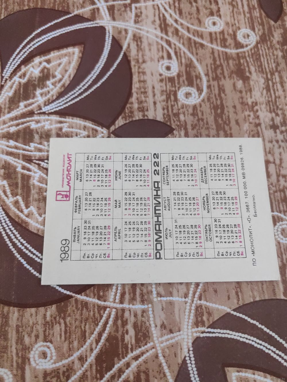 Календарик,реклама,Ротару