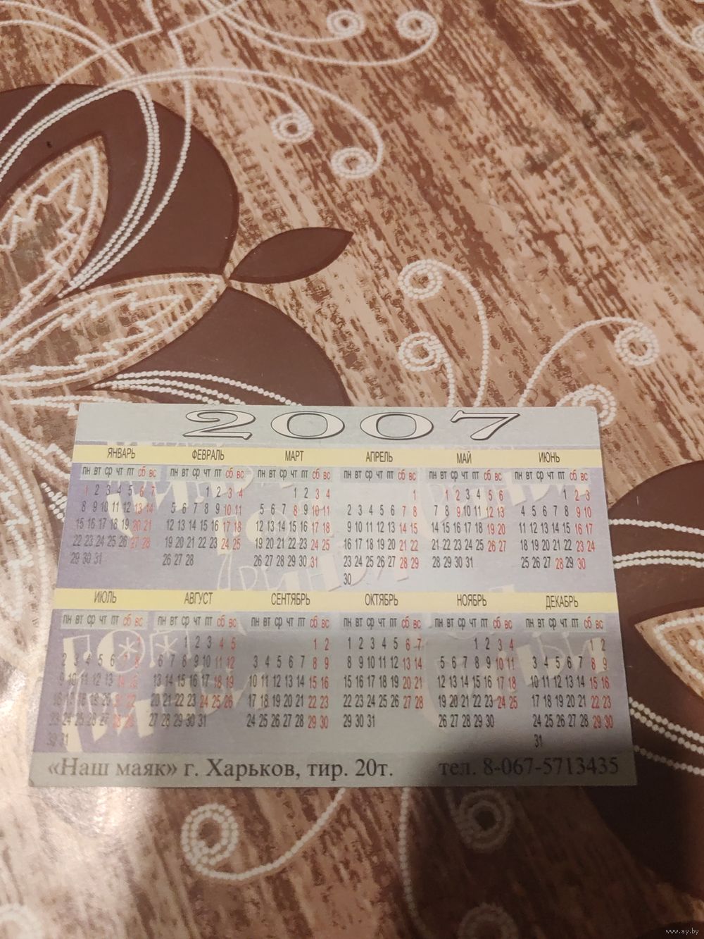 Календарик,реклама,украина,2007