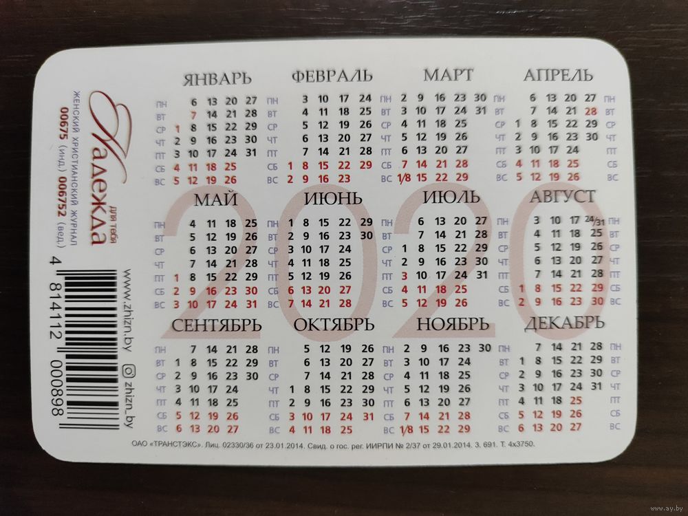 Календарик рекламный 2020г