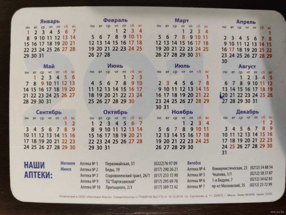 Календарик рекламный