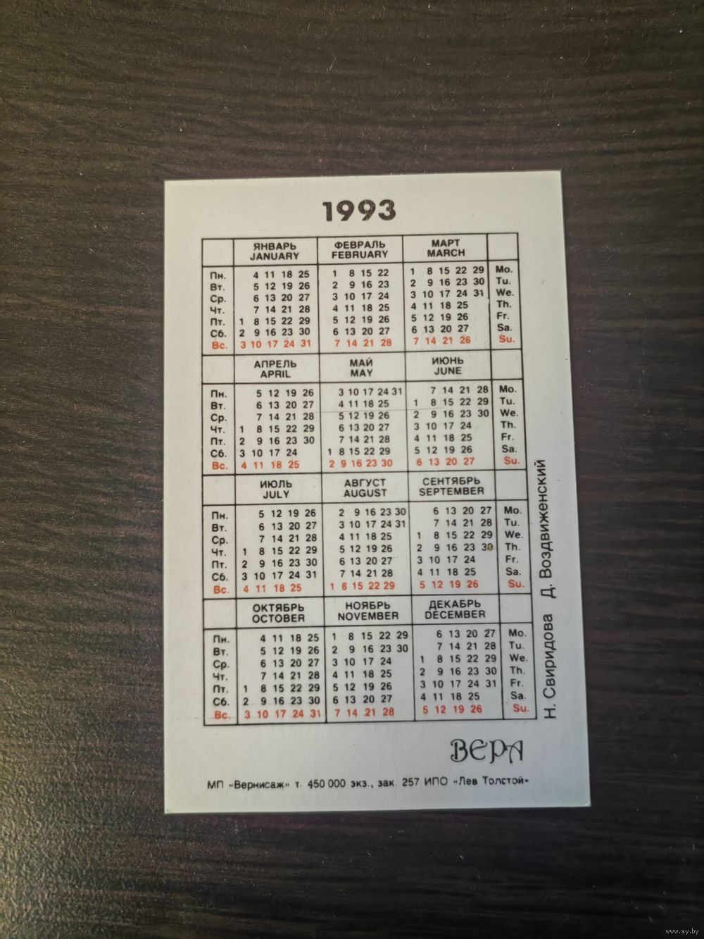 Календарик,религия,1993